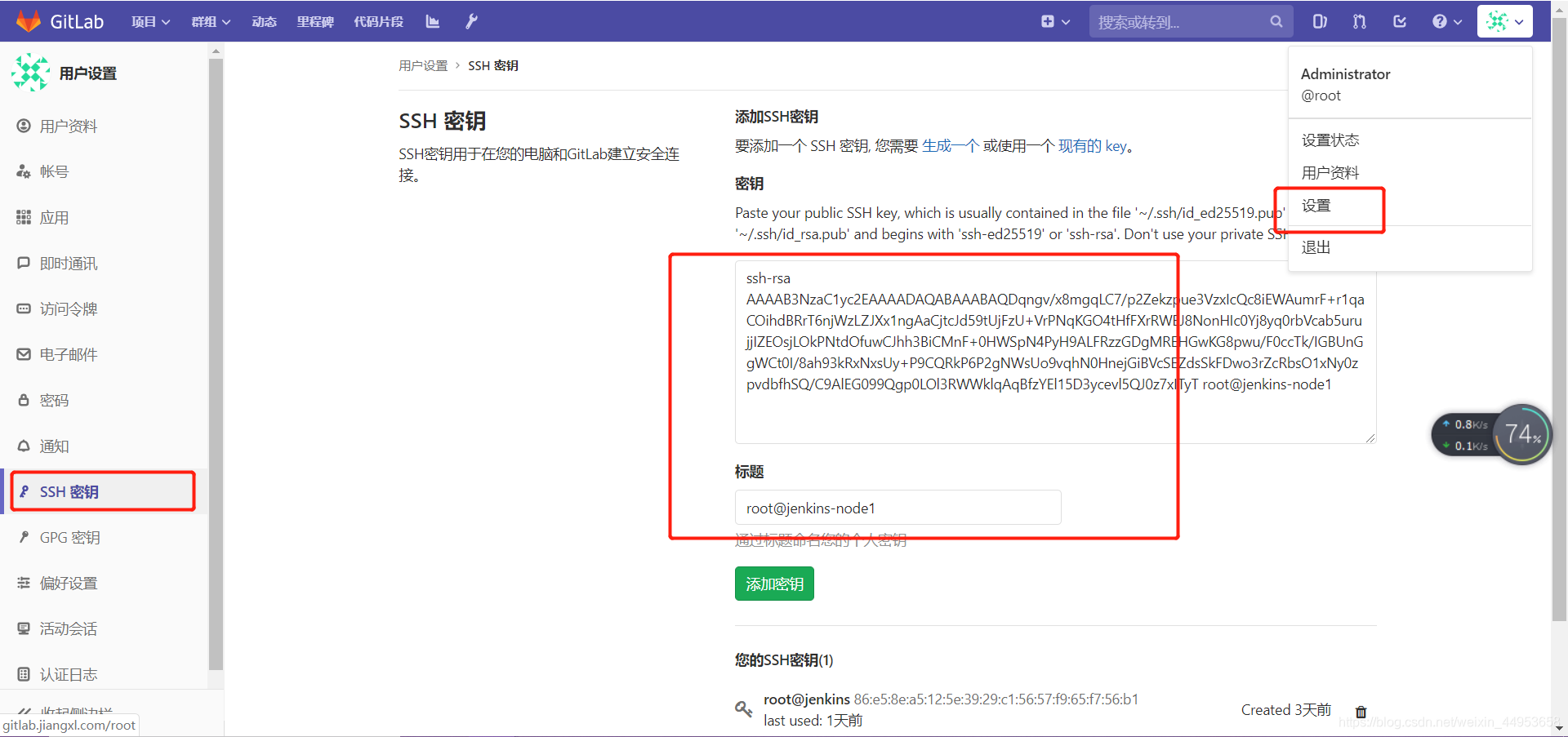 在gitlab上添加私钥