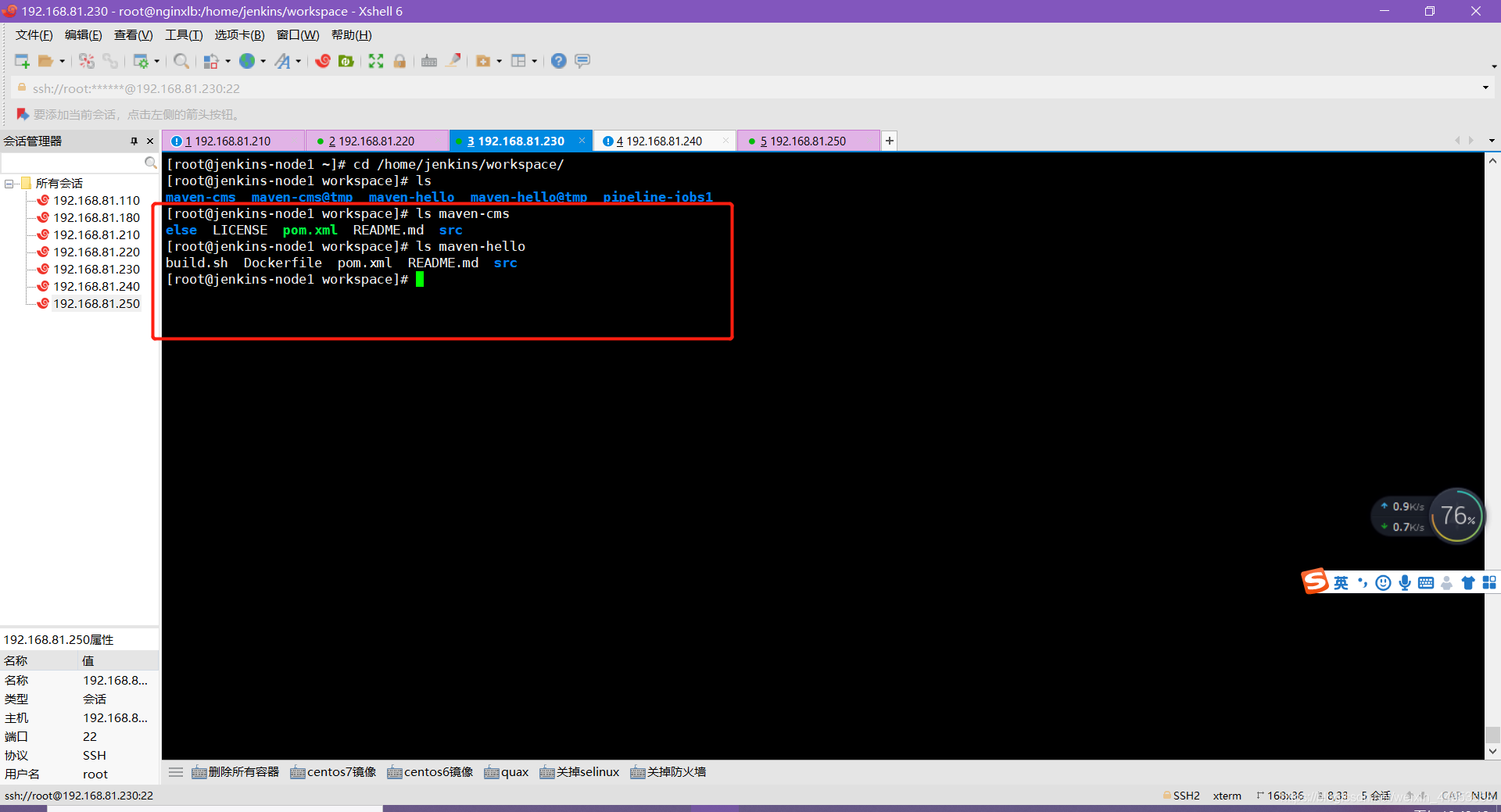 slave1上会把从gitlab拉取的代码保存到/home/jenkins/workspace中