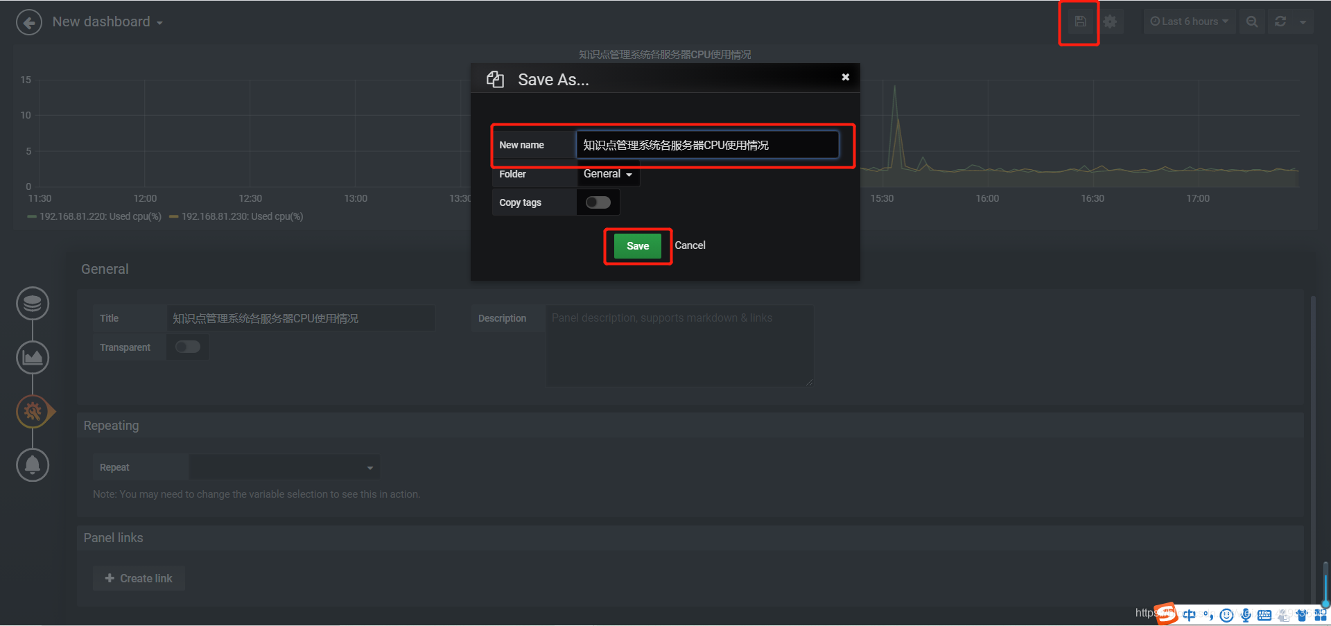 今天来总结一下如何创建dashboard以CPU使用情况为例创建一个dashboard