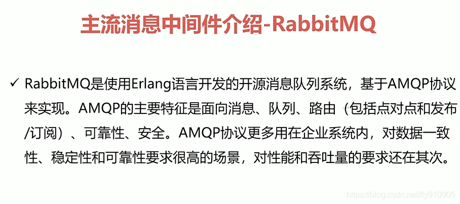 - RabbitMQ是使用Erlang语言开发的开源消息队列系统,基于AMQP协议来实现。