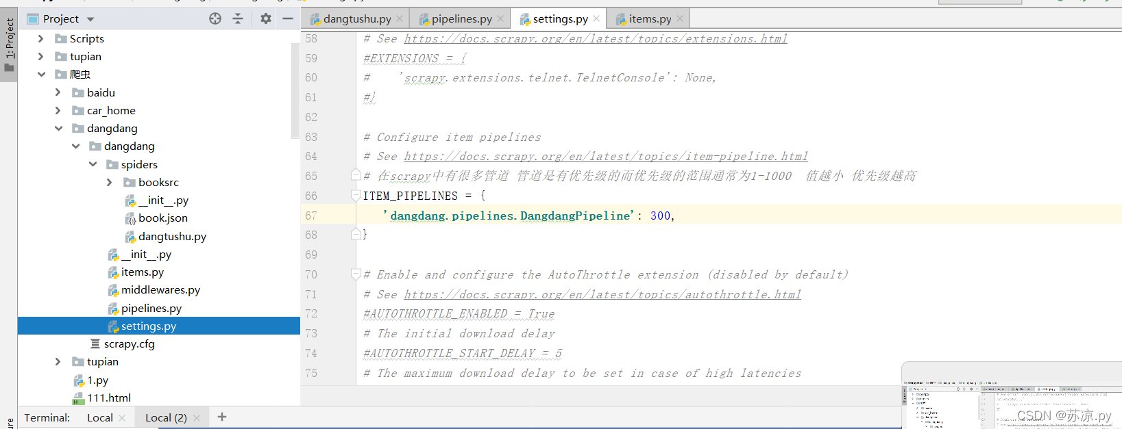 在控制台输入scrapy crawl dangtushu 执行爬虫文件就可以下载数据啦!!