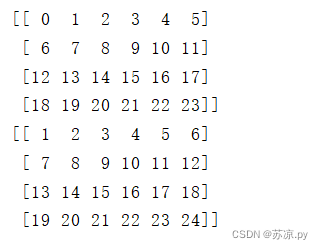 import numpy as np a = np.array(range(24)) b = a.reshape(4,6) print(b) print(b+1)