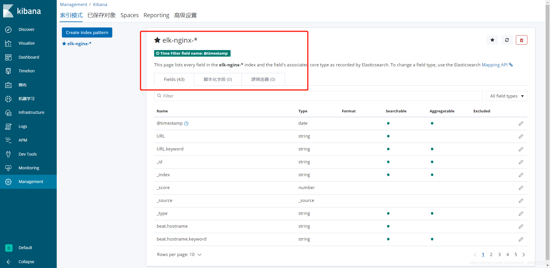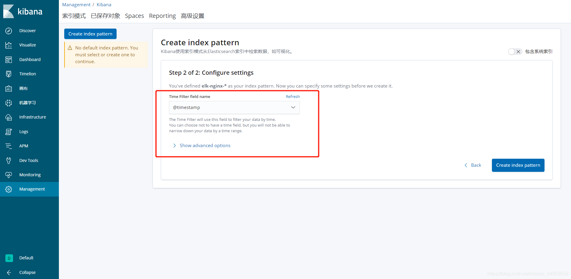 填写索引名elk-nginx-*之后会列出es上elk-nginx开头的索引库并进行关联
