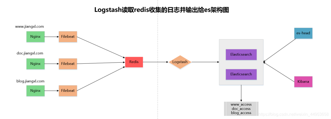 logstash只需要部署一台即可,只是用于将redis收集来的日志传输给es集群
