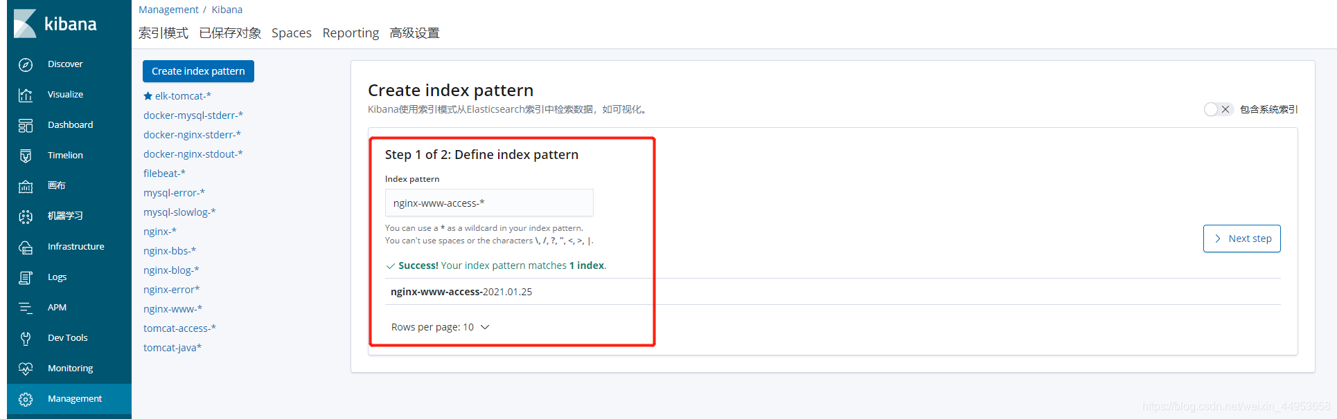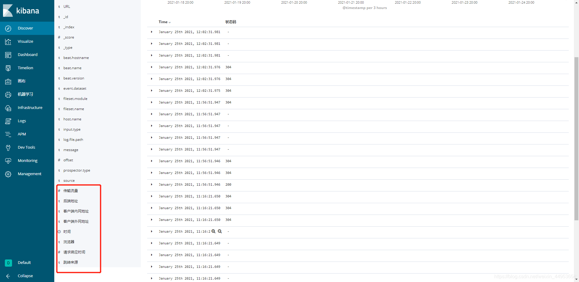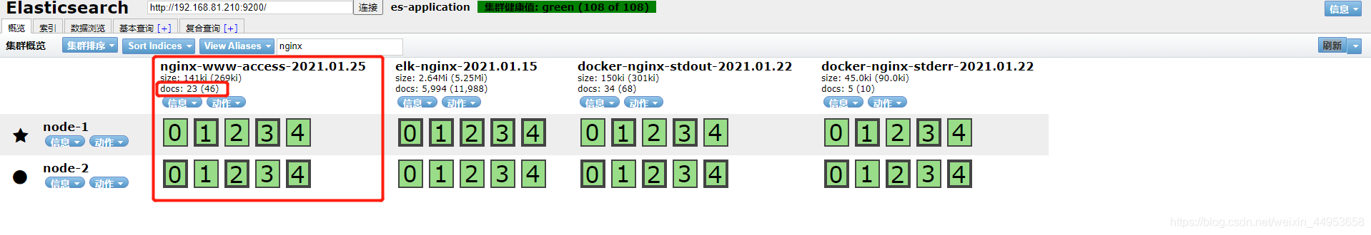 已经有nginx-www key了,并且数据也都是刚刚filebeat传输过来的nginx 日志