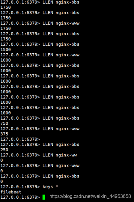 127.0.0.1:6379> LLEN nginx-www 0 127.0.0.1:6379> LLEN nginx-bbs 0