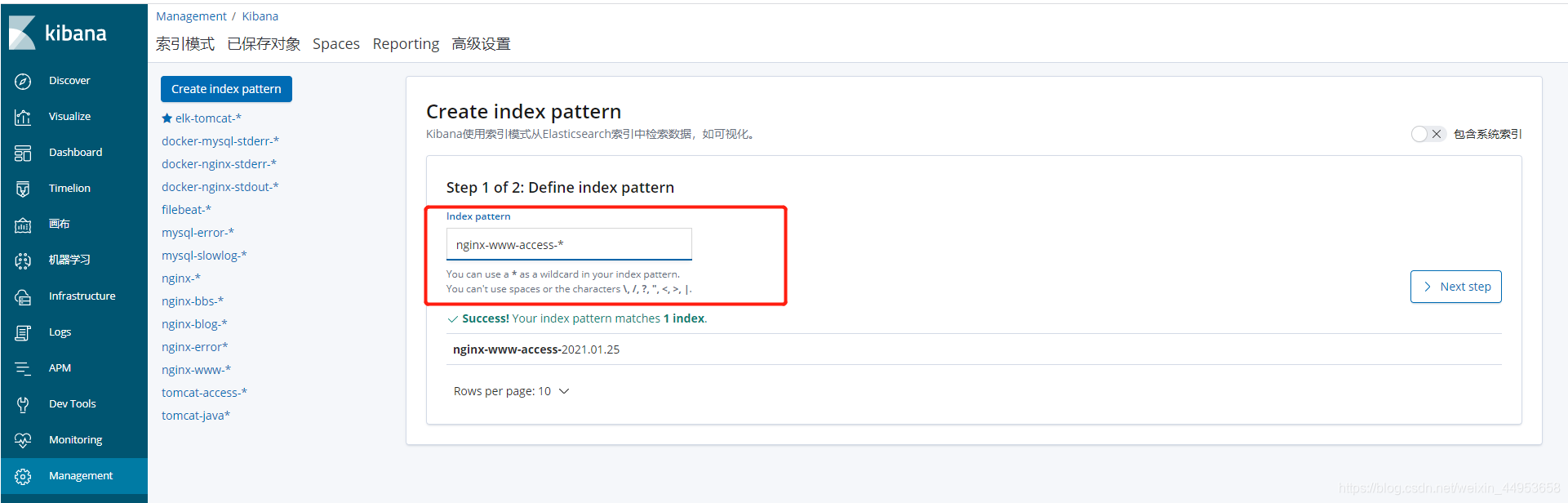 if “nginx-www” in [tags] { //当标签为nginx-www时,就创建nginx-www-access索引库,如果要写多组自定义索引就填写几个if即可