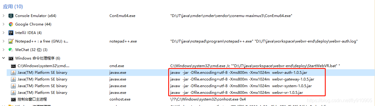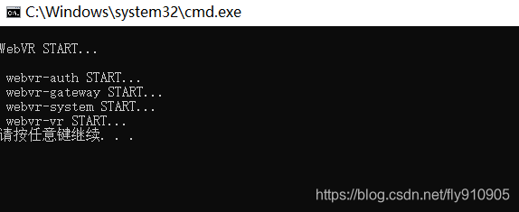 @echo off echo. echo WebVR START... echo. :: 进入目录文件夹 d: cd D:\JT\java\workspace\webvr-end\deploy :: 执行多个javaw命令,但是无法输出日志 echo webvr-auth START... start javaw -jar -Dfile.encoding=utf-8 -Xms800m -Xmx1024m webvr-auth-1.0.5.jar echo webvr-gateway START... start javaw -jar -Dfile.encoding=utf-8 -Xms800m -Xmx1024m webvr-gateway-1.0.5.jar echo webvr-system START... start javaw -jar -Dfile.encoding=utf-8 -Xms800m -Xmx1024m webvr-system-1.0.5.jar echo webvr-vr START... start javaw -jar -Dfile.encoding=utf-8 -Xms800m -Xmx1024m webvr-vr-1.0.5.jar pause