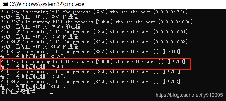 其中报错信息"错误,没有找到进程XXX",并不影响,因为对应的进程已经再上面被杀掉
