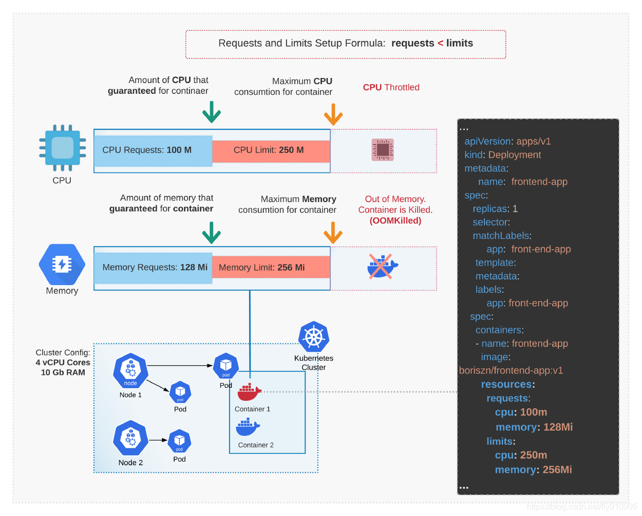 下图,解释了Kubernetes资源的度量单位,资源状态工作流以及如何使用资源限制。