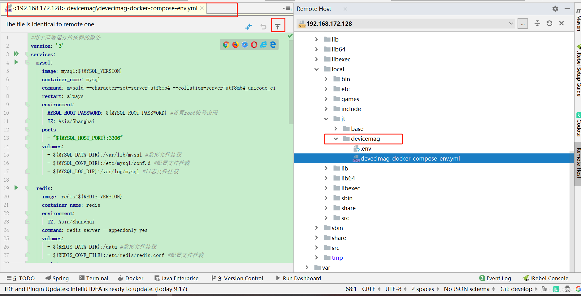 要先开一下ssh session就可以了(tools-->Start SSH session),能看到在idea的下方开启了一个终端