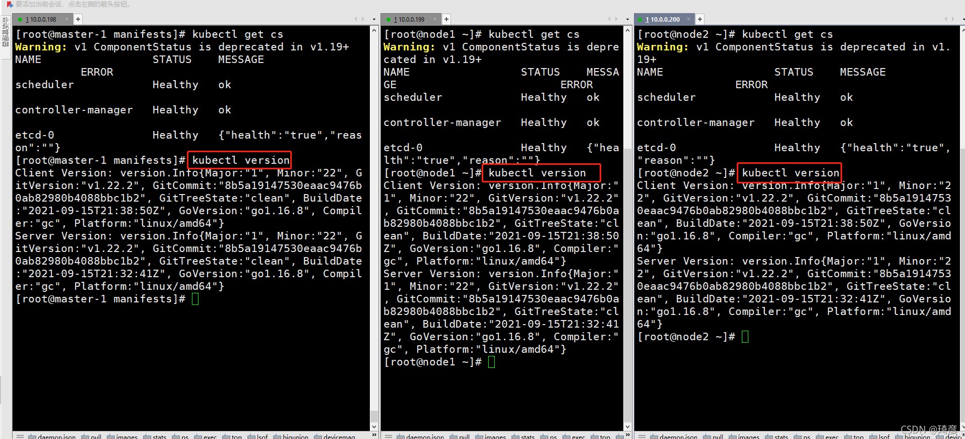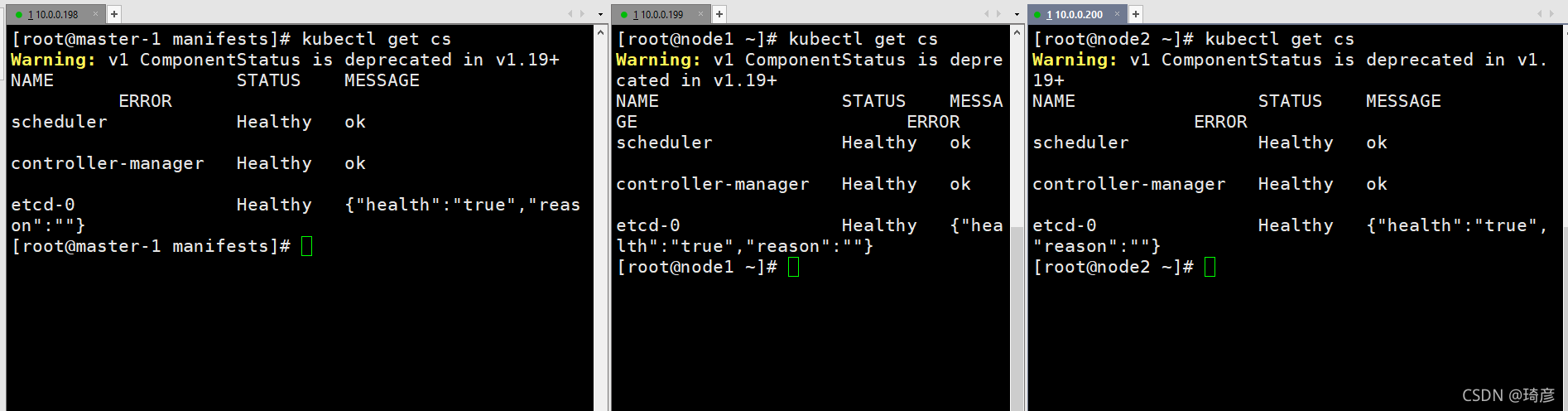 kubectl get cs命令来检测组件的运行状态
