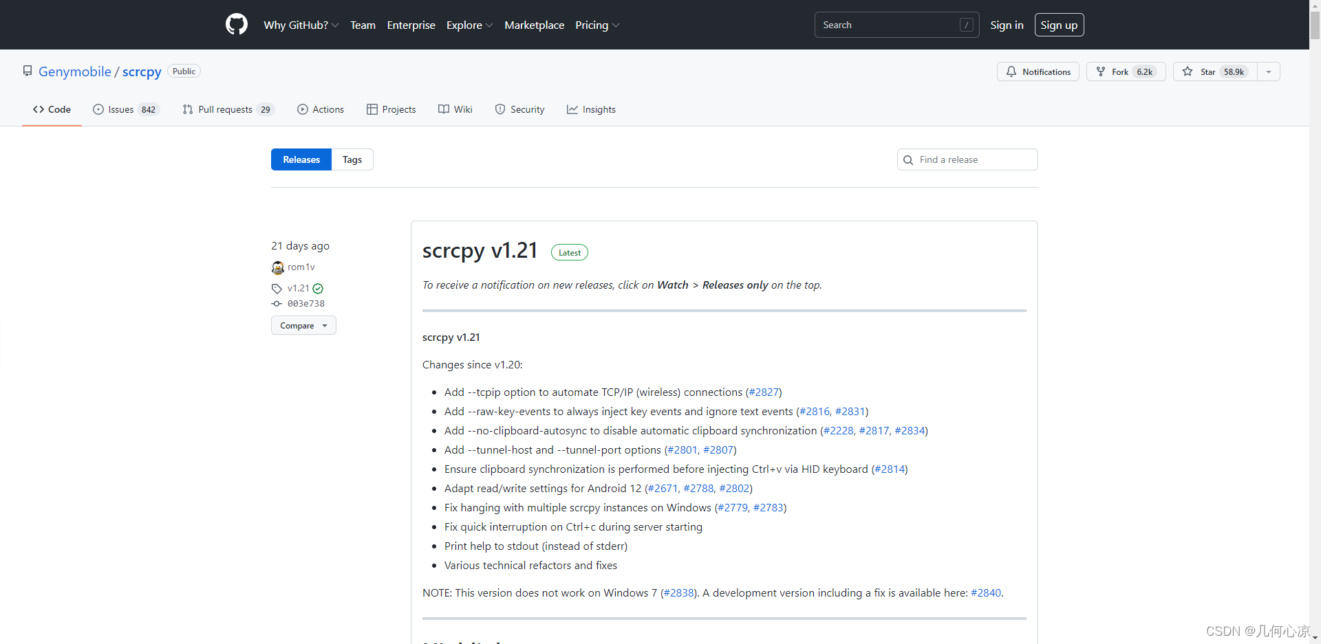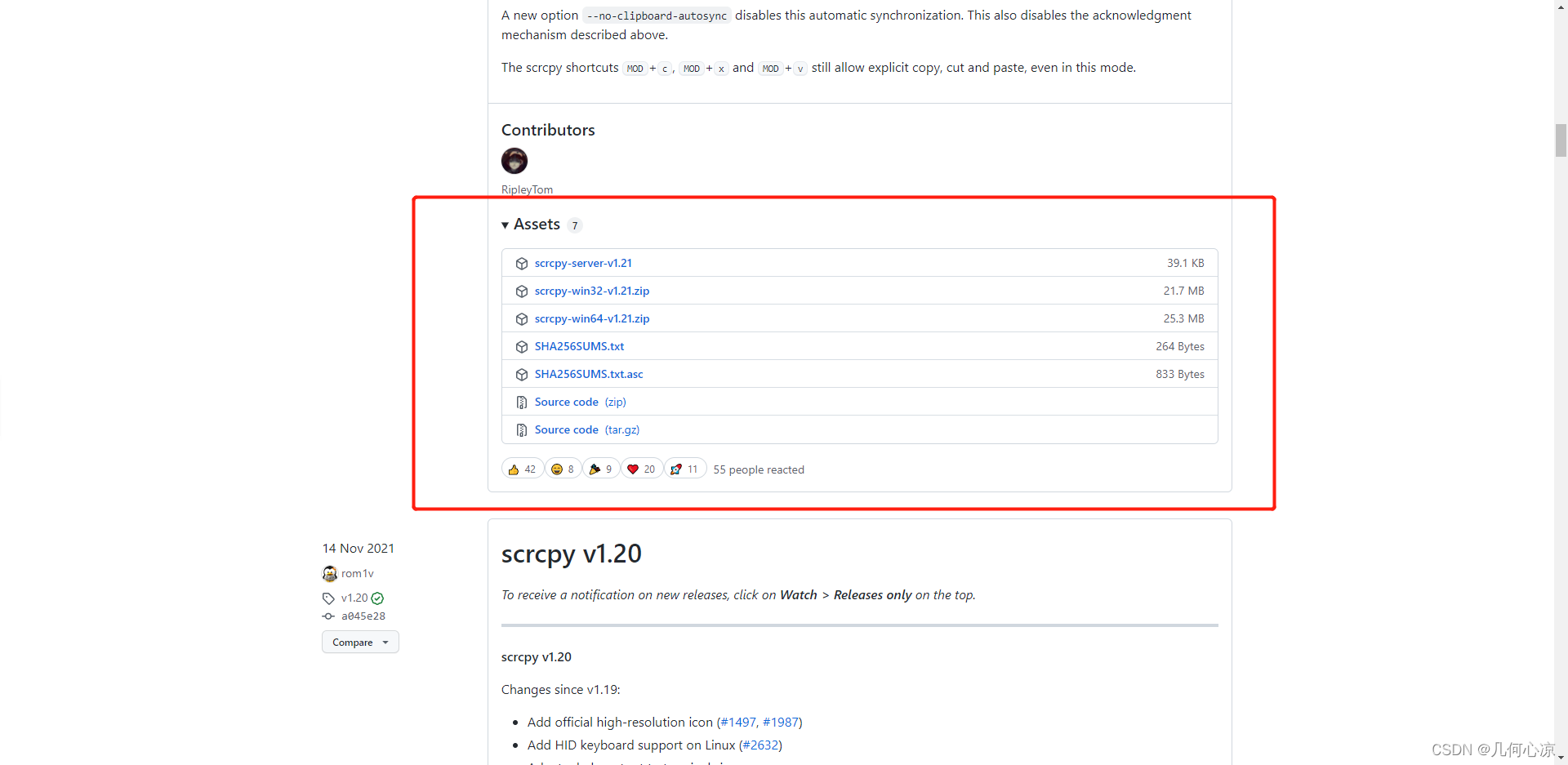 - 我们访问后面链接 https://github.com/Genymobile/scrcpy/releases