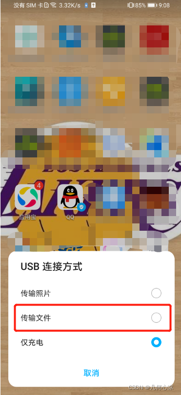 - 使用数据线连接手机(手机弹出下方的提示均认可)
