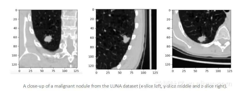 为了确定是否有人会发展成肺癌,不得不寻找早期阶段的恶性肺结节,而在肺部CT图中发现早期恶性结节就像大海捞针。为了说明这个声明,下面一起看看LngC / IDRI数据集中的恶性结节的例子,这些数据集是从LUng Node Analysis Grand Challenge中获得的,本文广泛使用了这个数据集(通常也被称为LUNA数据集,该数据集中包含已被诊断患有肺癌的患者)。