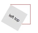 .rotate{ -webkit-transform:rotate(30deg); -moz-transform:rotate(30deg); -o-transform:rotate(30deg); -ms-transform:rotate(30deg); transform:rotate(30deg); } .transform_left_top{ -webkit-transform-origin:left top; -moz-transform-origin:left top; -o-transform-origin:left top; -ms-transform-origin:left top; transform-origin:left top; }