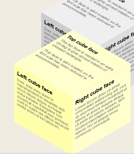 .skew{ -webkit-transform:skew(30deg, 10deg); -moz-transform:skew(30deg, 10deg); -o-transform:skew(30deg, 10deg); -ms-transform:skew(30deg, 10deg); transform:skew(30deg, 10deg); }