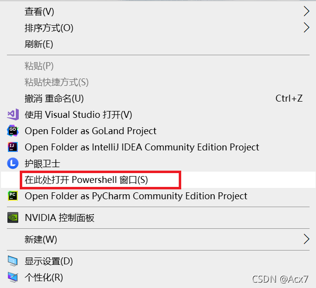 3.在任意文件夹下空白处按住Shift后单击鼠标右键,选择PowerShell窗口(PowerShell比CMD更强大)