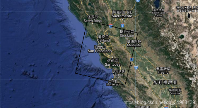 //数据是从Landsat8中选取美国旧金山的一景影像 var image = ee.Image('LANDSAT/LC8_L1T/LC80440342014077LGN00') .select(['B2', 'B3', 'B4', 'B5', 'B6', 'B7', 'B10', 'B11']); // Display the input imagery and the region in which to do the PCA.显示输入图像和进行 PCA 的区域选择。 var region = image.geometry(); Map.centerObject(region, 10); Map.addLayer(ee.Image().paint(region, 0, 2), {}, 'Region'); Map.addLayer(image, {bands: ['B5', 'B4', 'B2'], min: 0, max: 20000}, 'Original Image');