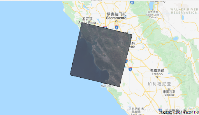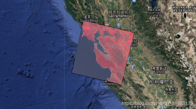 通过'B5', 'B4', 'B2'波段合成的影像:而且显示区域只有你选择的这副影像