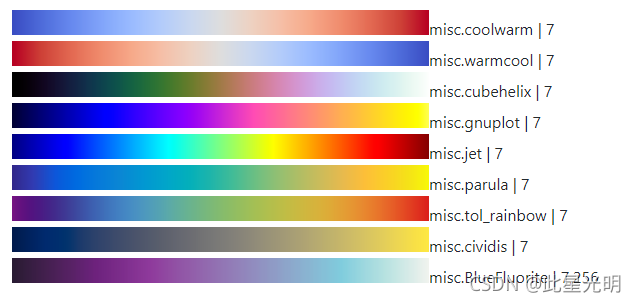 如果您只想使用调色板的一部分,您可以使用该slice()功能对您想要的颜色进行子集化。例如,如果您只想要misc.gnuplot调色板的粉红色到黄色部分,请使用以下调色板定义。