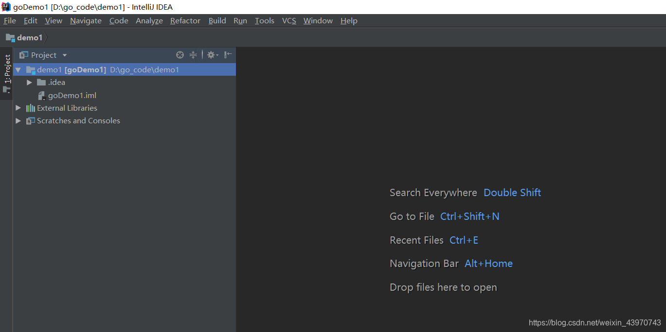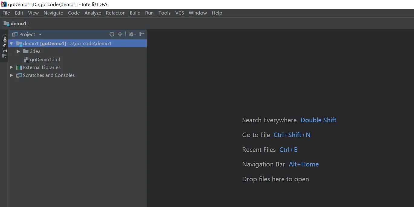 4、go项目就算基本创建好了,项目名:demo1