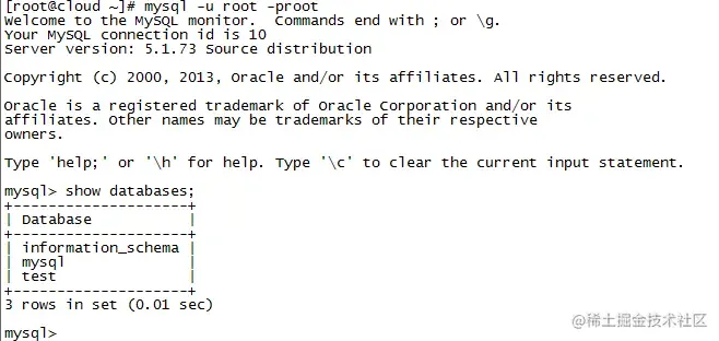 使用mysql -u root -proot来登录mysql。如果出现以下界面表示设置成功。