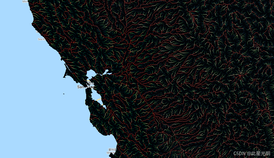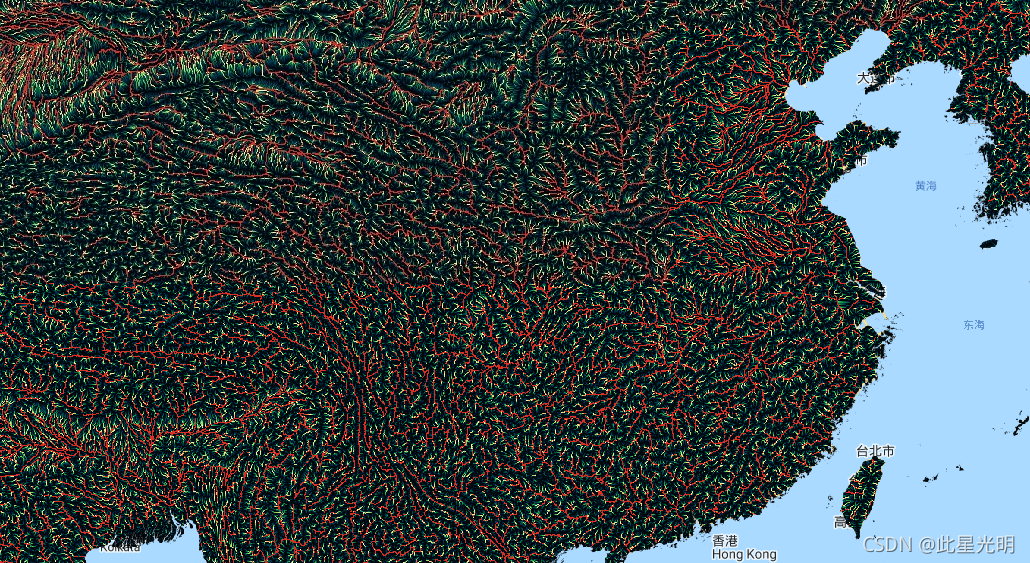 请注意,在北纬60度以上的地区,HydroSHEDS数据的质量要低得多,因为没有底层的SRTM高程数据可用,因此要用更粗的分辨率DEM(美国地质调查局提供的HYDRO1k)。