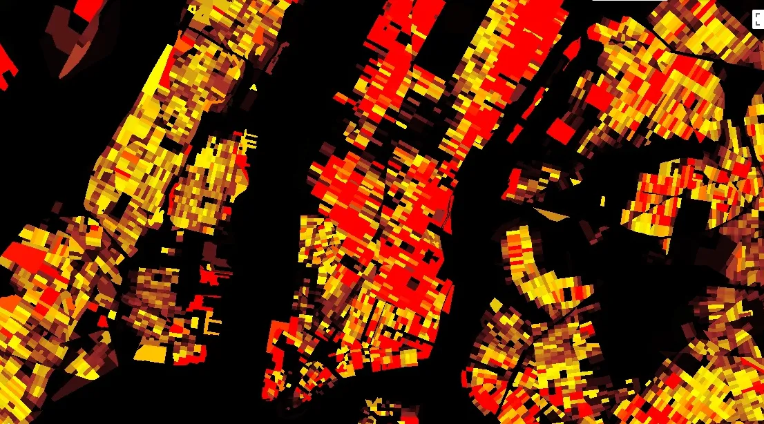 var dataset = ee.FeatureCollection('TIGER/2010/Blocks'); var visParams = { min: 0.0, max: 700.0, palette: ['black', 'brown', 'yellow', 'orange', 'red'] }; // 将字符串转为数字类型 dataset = dataset.map(function (f) { return f.set('pop10', ee.Number.parse(f.get('pop10'))); }); var image = ee.Image().float().paint(dataset, 'pop10'); Map.setCenter(-73.99172, 40.74101, 13); Map.addLayer(image, visParams, 'TIGER/2010/Blocks'); Map.addLayer(dataset, null, 'for Inspector', false);