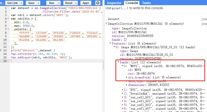 首先看modis影像的坐标系是什么——SR-ORG:6842,然后进行修改后再次尝试即可。