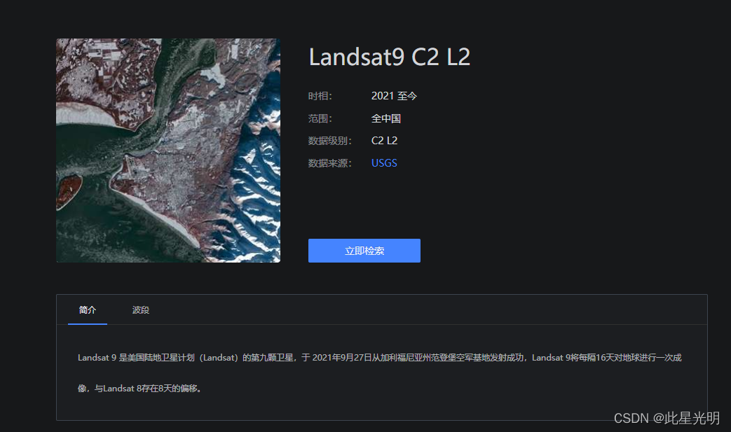 目前现有的数据集虽然不多,但是已经有Landsat8/9和sentinel1/2,相比GEE目前已经抢先安排了Landsat9的数据集着实有点意外,给AI earth 点赞,另外,在介绍上都是中文,但是并没有GEE中的类似代码可以直接使用,此外,不过数据集的范围仅限中国境内。