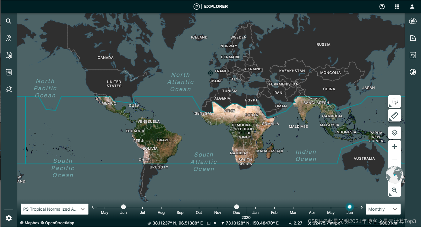 期间有新的产品发布,类似于Google earth的在线地图查询工具,planet explorer,这里的一个主要目的就是通过在线免费获取一个3.7m的高分辨率影像,不用写代码