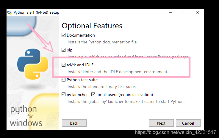 重新安装Python,在tk那一步,打勾