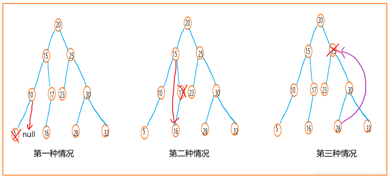 - 第一种情况:要删除的节点没有子节点,这样的话,可以直接将指向该节点的父节点指针设为 null。