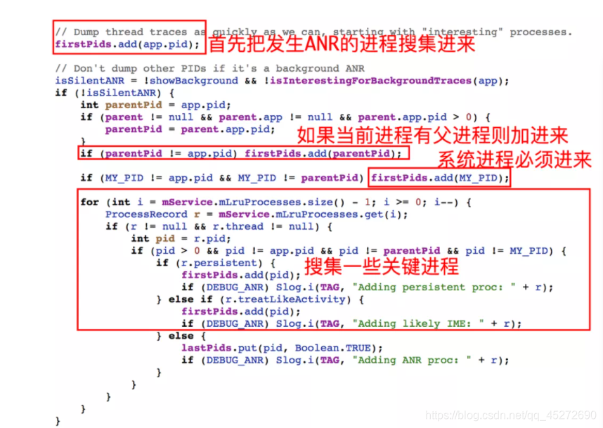 firstPids队列:第一个是ANR进程,第二个是system_server,剩余是所有persistent进程;