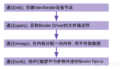 主要是驱动设备的初始化(binder_init),打开 (binder_open),映射(binder_mmap),数据操作(binder_ioctl)。