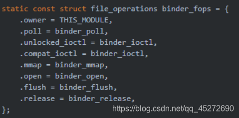 file_operations结构体,指定相应文件操作的方法,可以看到在上面用户空间的方法会最终调用到对应的方法,就是根据这个来定的