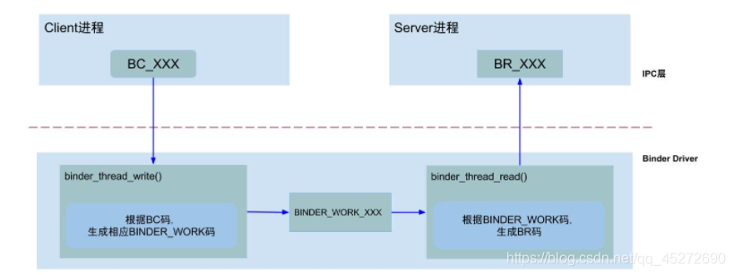 client进程执行binder_thread_write,根据BC_XXX命令,生成相应的binder_work;
