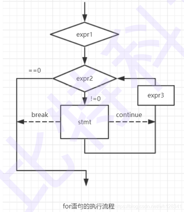 #include<stdio.h> int main01() { int i = 0; for (i = 1; i <= 10; i++) { if (5 == i) break; printf("%d ", i);//1 2 3 4 } //5==5为真,终止所在的for循环 return 0; } int main02() { int i = 0; for (i = 1; i <= 10; i++) { if (5 == i) continue; printf("%d ", i);//1 2 3 4 6 7 8 9 10 } //这里并没有跳过调整部分i++,所以不会死循环;而while循环中的continue很可能会跳过调整部分,造成死循环 return 0; }