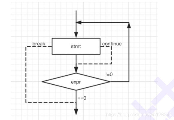 #include<stdio.h> int main01() { int i = 1; do { if (5 == i) break; printf("%d ", i);//1 2 3 4 i++; } while (i <= 10); return 0; } int main02() { int i = 1; do { if (5 == i) continue; printf("%d ", i);//1 2 3 4...死循环 i++; } while (i <= 10); //当5==5为真时,它会跳过调整部分i++,到判断部分 return 0; }