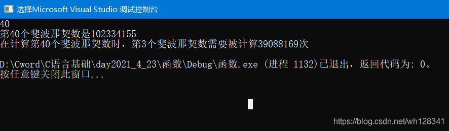 #define _CRT_SECURE_NO_WARNINGS #include<stdio.h> int count = 0; int Fib(int n) { //统计第3个斐波那契数的计算次数 if(3 == n) count++; if(n > 2) return Fib(n - 1) + Fib(n - 2); else return 1; } int main() { int n = 0; scanf("%d", &n); int ret = Fib(n); printf("第%d个斐波那契数是%d\n", n, ret); printf("在计算第40个斐波那契数时,第3个斐波那契数需要被计算%d次\n", count); return 0; }