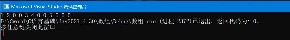 #include<stdio.h> int main() { int arr[][4] = {{1,2}, {3,4}, {5,6}}; int i = 0; int j = 0; int sz = sizeof(arr) / sizeof(arr[0][0]);//12 int* p = &arr[0][0]; for(i = 0; i < 12; i++) { printf("%d ", *p); p++; } return 0; }