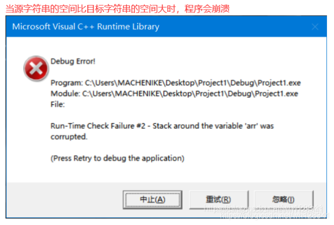 ❓ 当原字符串要拷贝的空间比目标字符串的空间大时