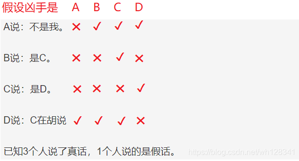 日本某地发生了一件谋杀案,警察通过排查确定杀人凶手必为4个嫌疑犯的一个。以下为4个嫌疑犯的供词: