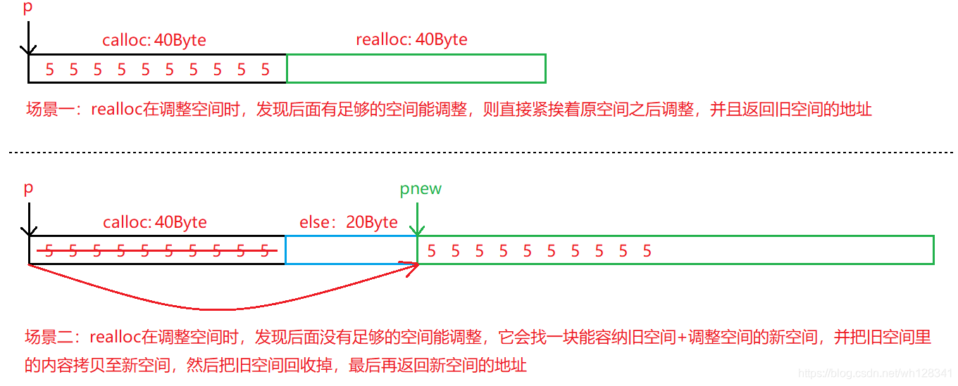 先用新地址接收,如果开辟成功再把它赋值给旧空间,这样不仅避免了旧空间的丢失,同样也适用场景一、场景二