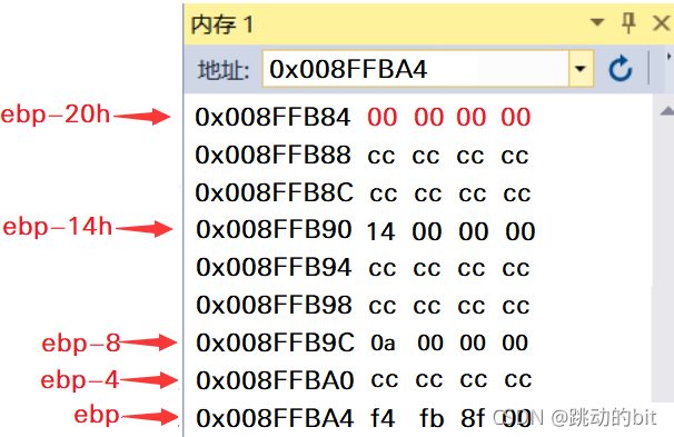 在开辟好栈帧空间后,会初始化 0xcccccccc 这样的随机值,而局部变量的初始化操作就会将随机值覆盖