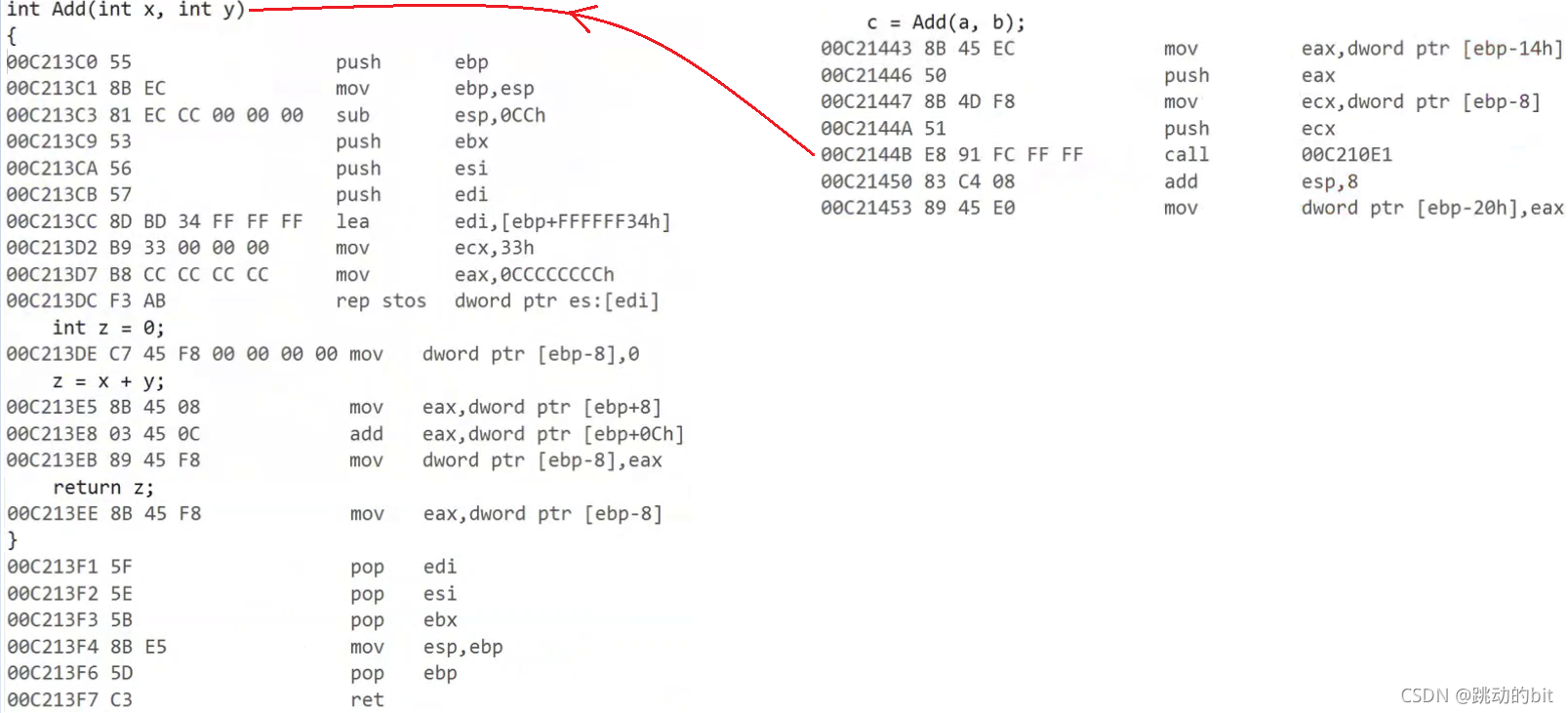 4.6、进入 Add 函数前,会先为 Add 函数开辟函数栈帧,这里开辟的方式类似于上面 main,所以这里就不细谈了