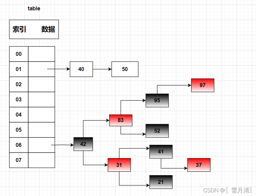 - JDK1.8中的哈希表是使用链表+红黑树解决哈希冲突