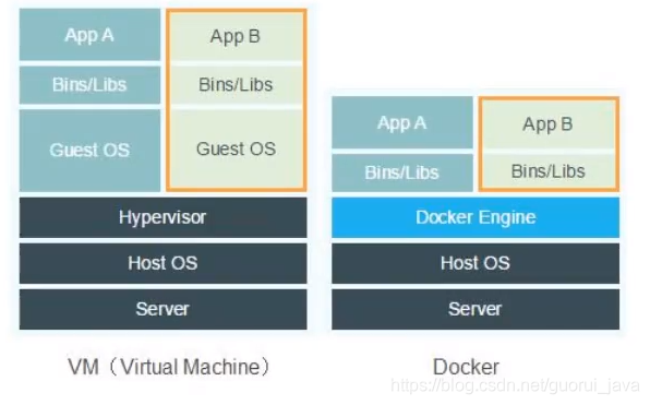 - docker利用的是宿主机的内核,VM需要的是Guest OS。