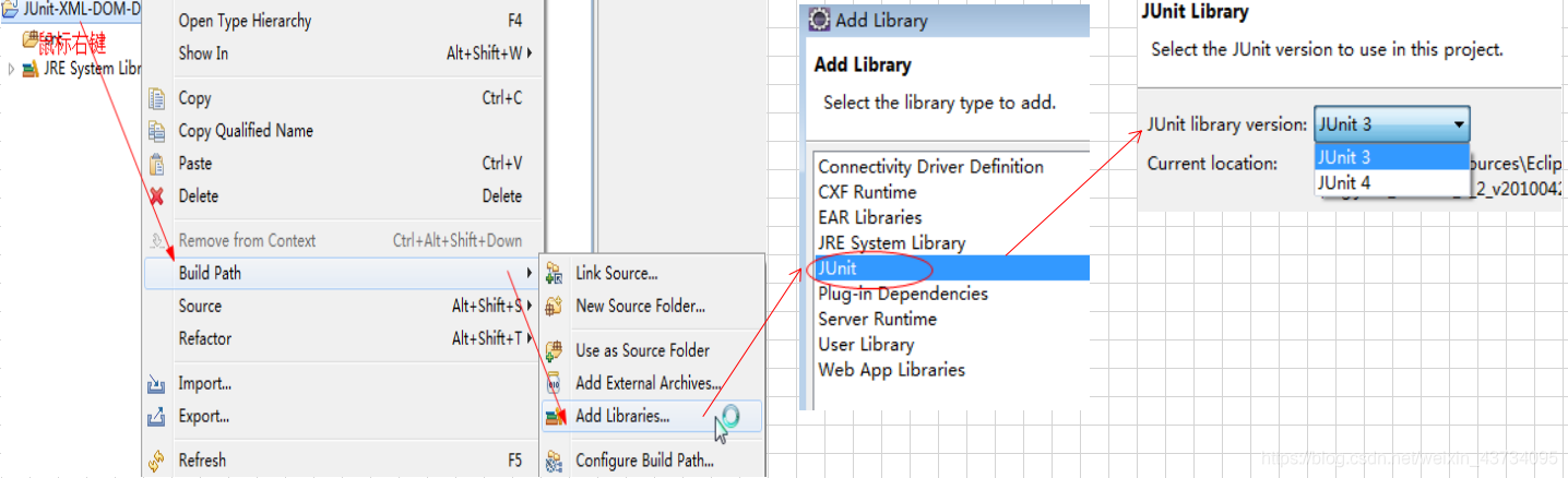 - 把 junit3.x 的测试 jar,添加到项目中;
